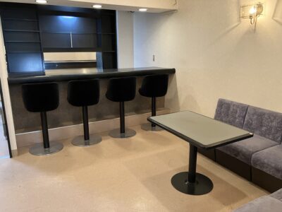 明るくモダンな雰囲気で、スナックやキャバクラなどに向いた物件です。ハイカウンターとゆったりとしたテーブル席があり、様々な用途に対応可能です。