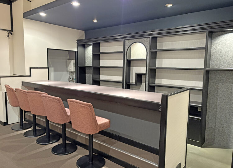 店内を一望できる高めのカウンター席が特徴的なBARに最適な物件です。