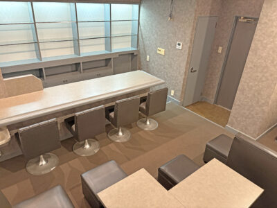 ポイント店内を一望できる高めのカウンター席が特徴的なBARに最適な物件です。